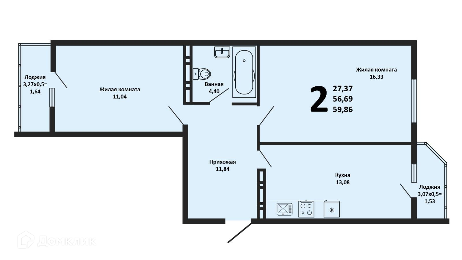 Общая площадь 59.86 м2