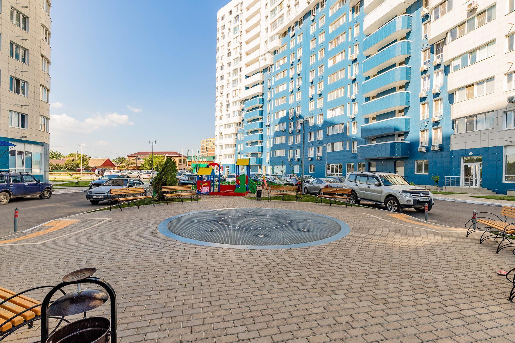 Красивая по современному благоустроенная придомовая территория, включает в себя комфортные, уютные и безопасные игровые площадки для маленьких жителей, для любителей спорта – спортивные площадки, а также большое количество прогулочных аллей и зон отдыха, в т. ч. своя набережная.