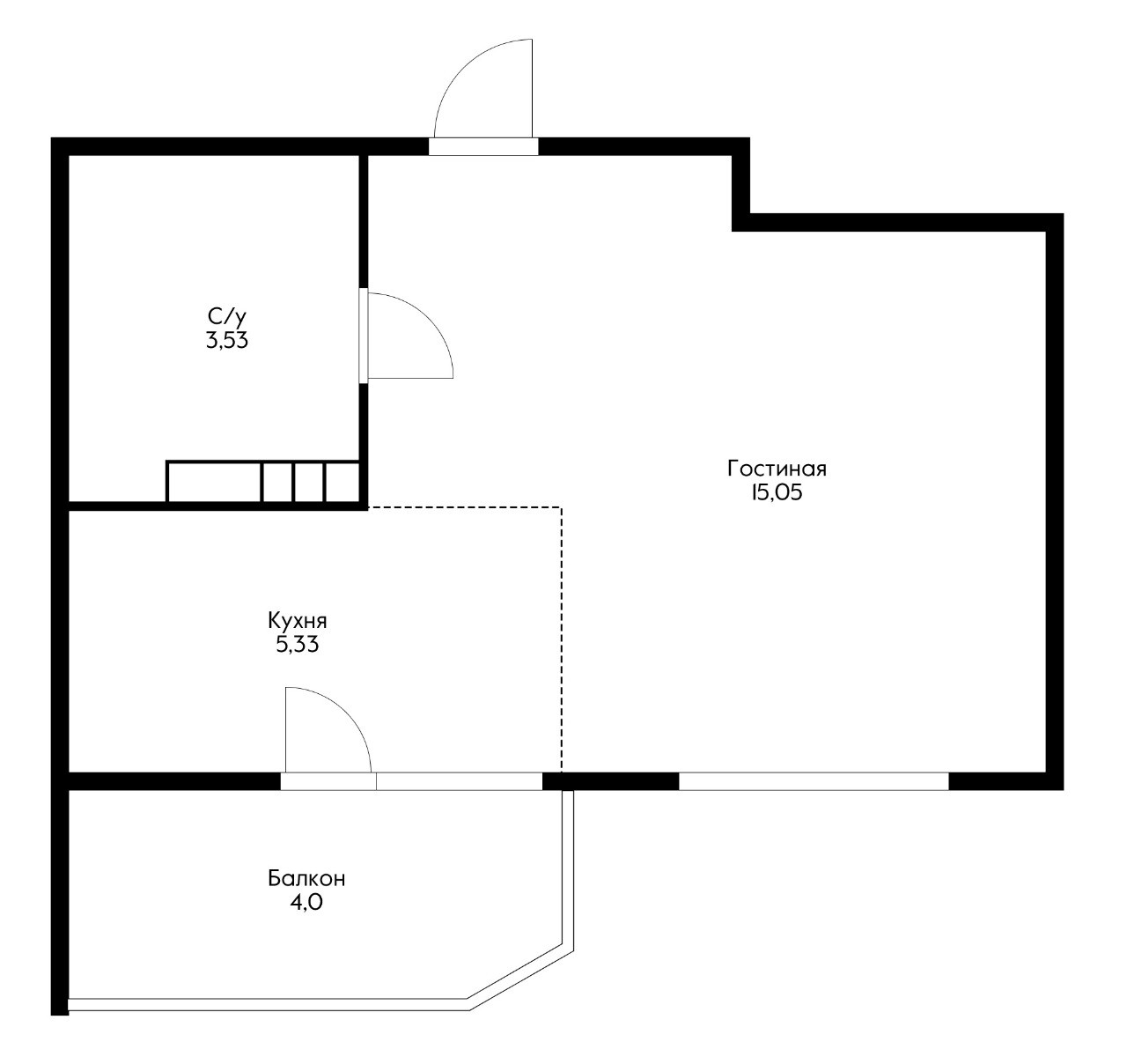 Общая площадь 26.8 м2