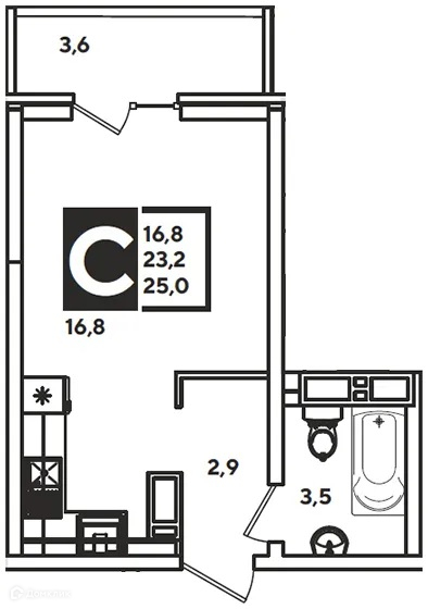 Общая площадь 25 м2