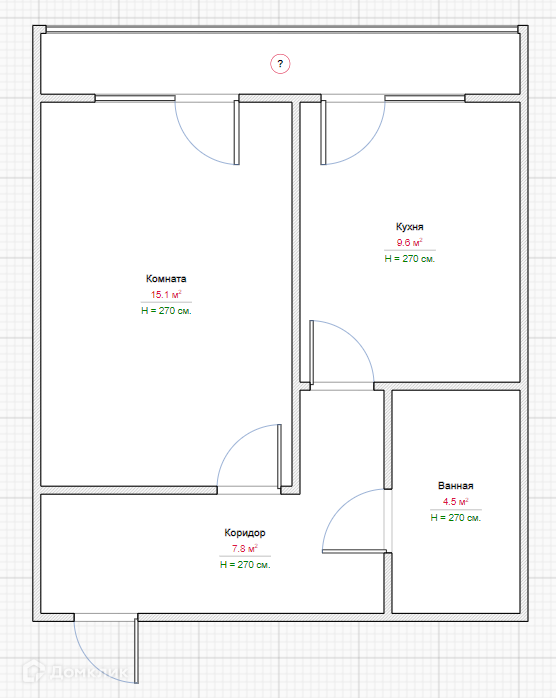 - Площадь объекта 37.6м2. Комната 15.1м2. Кухня 9.6 м2. Высота потолков 2.7м