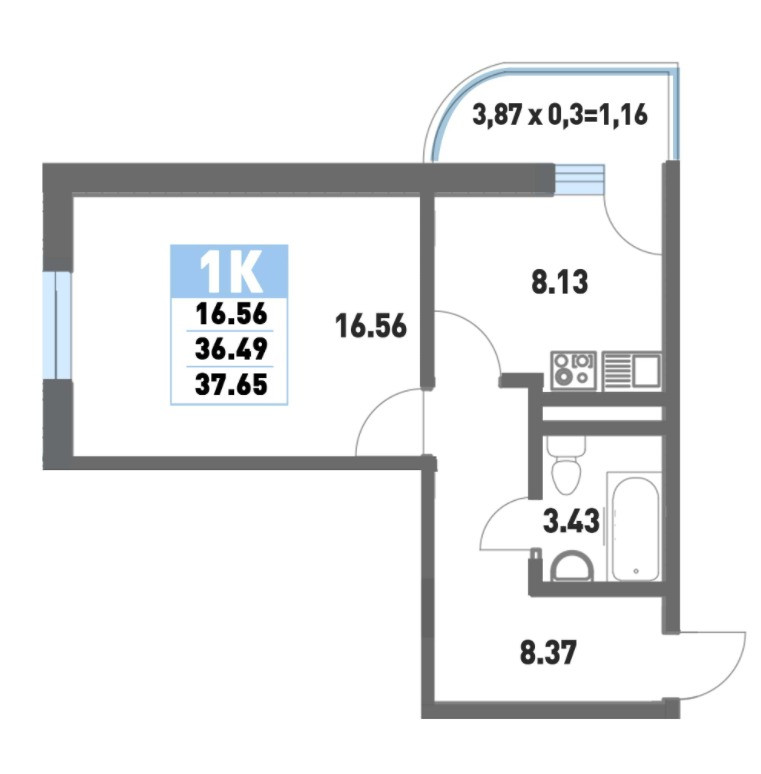 Общая площадь 36.9 м2