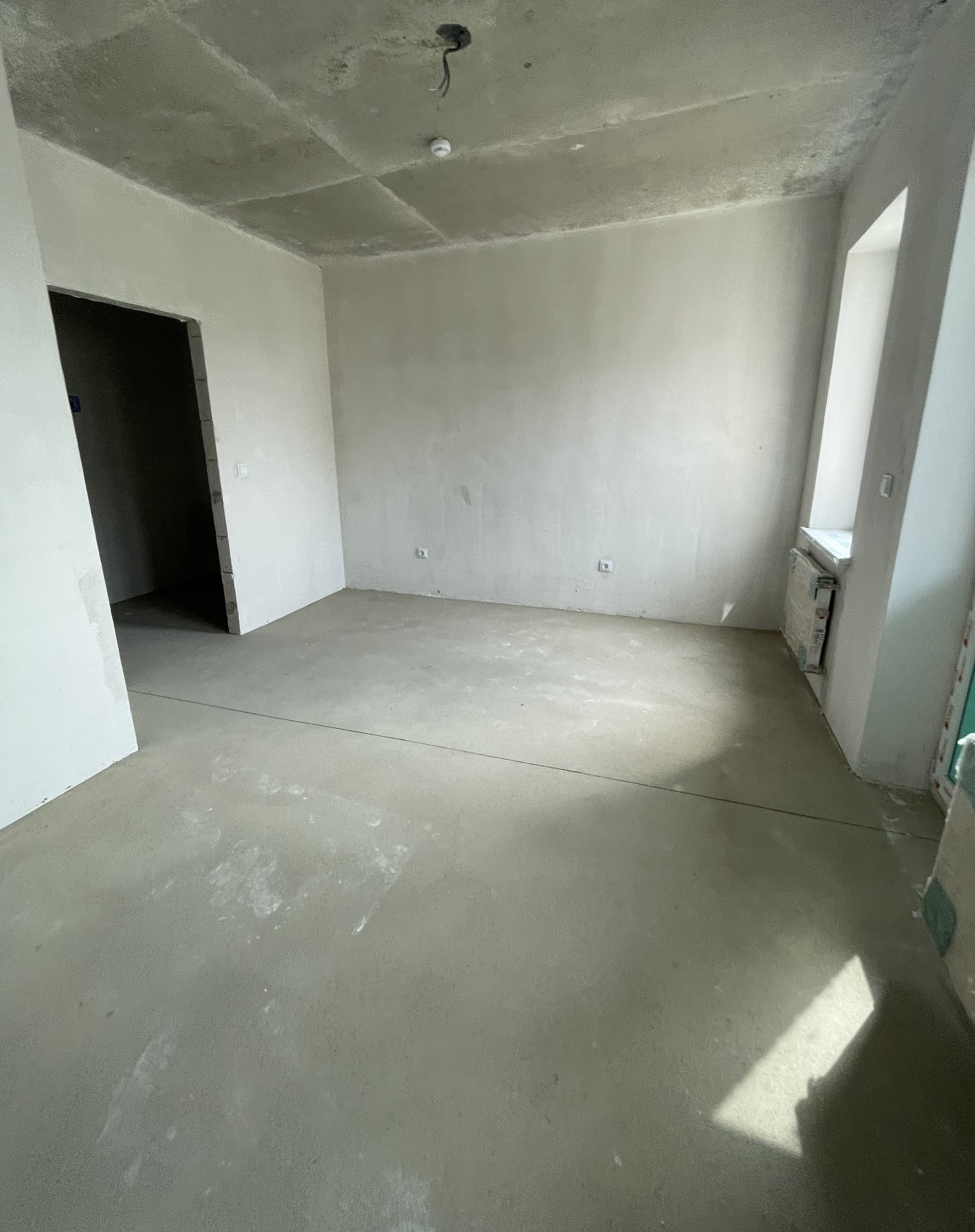 Предчистoва я отделка квартиры: стяжка пола, штукатурка стен, электроразводка по всей квартире и радиаторы отопления, без сантехники.
