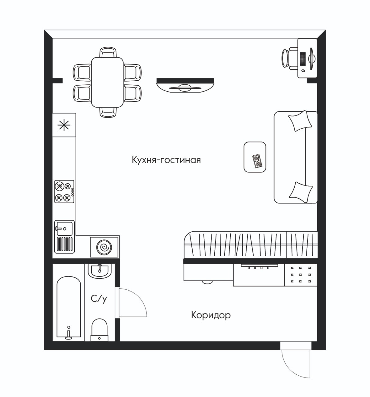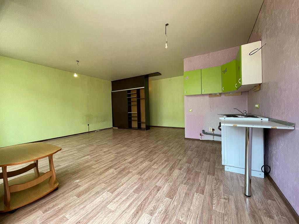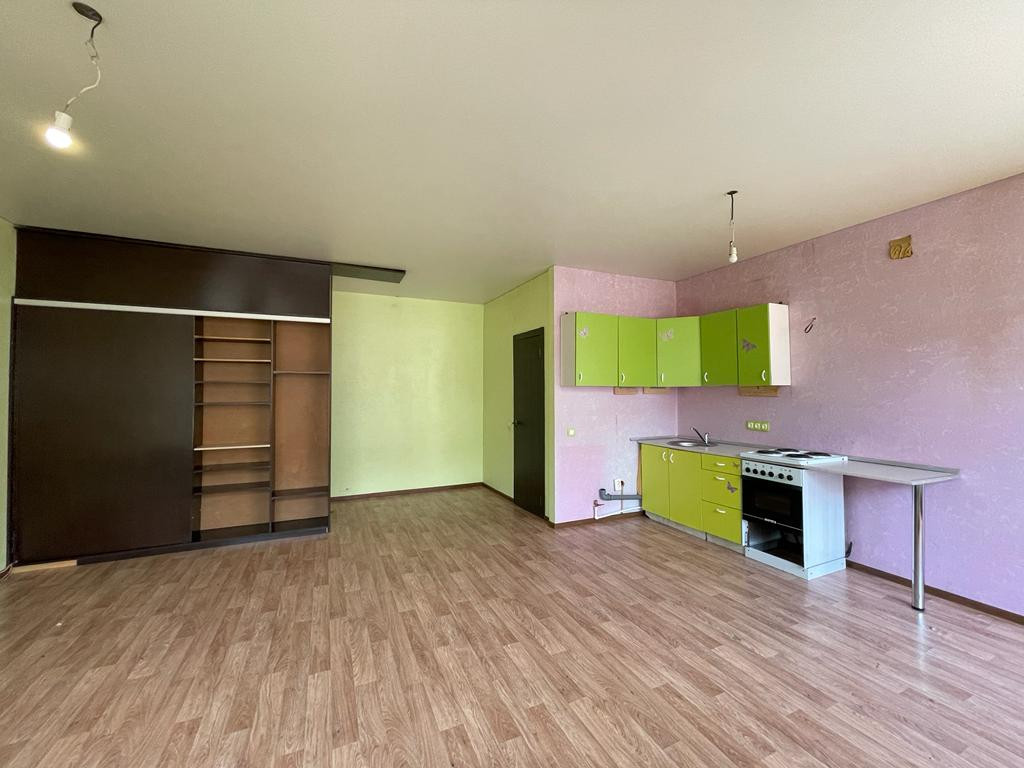 Просторная, светлая студия. Удобная транспортная развязка, что позволяет добраться в любую точку города.