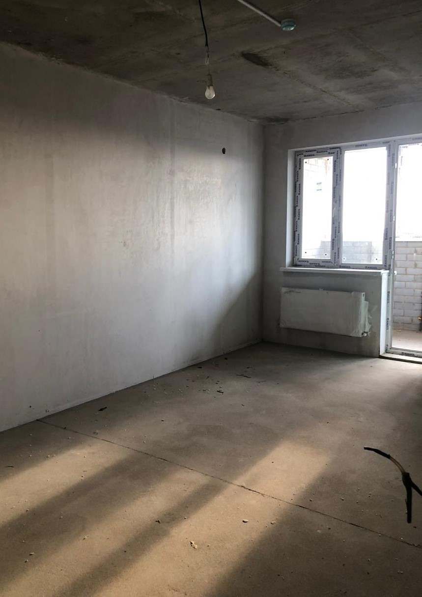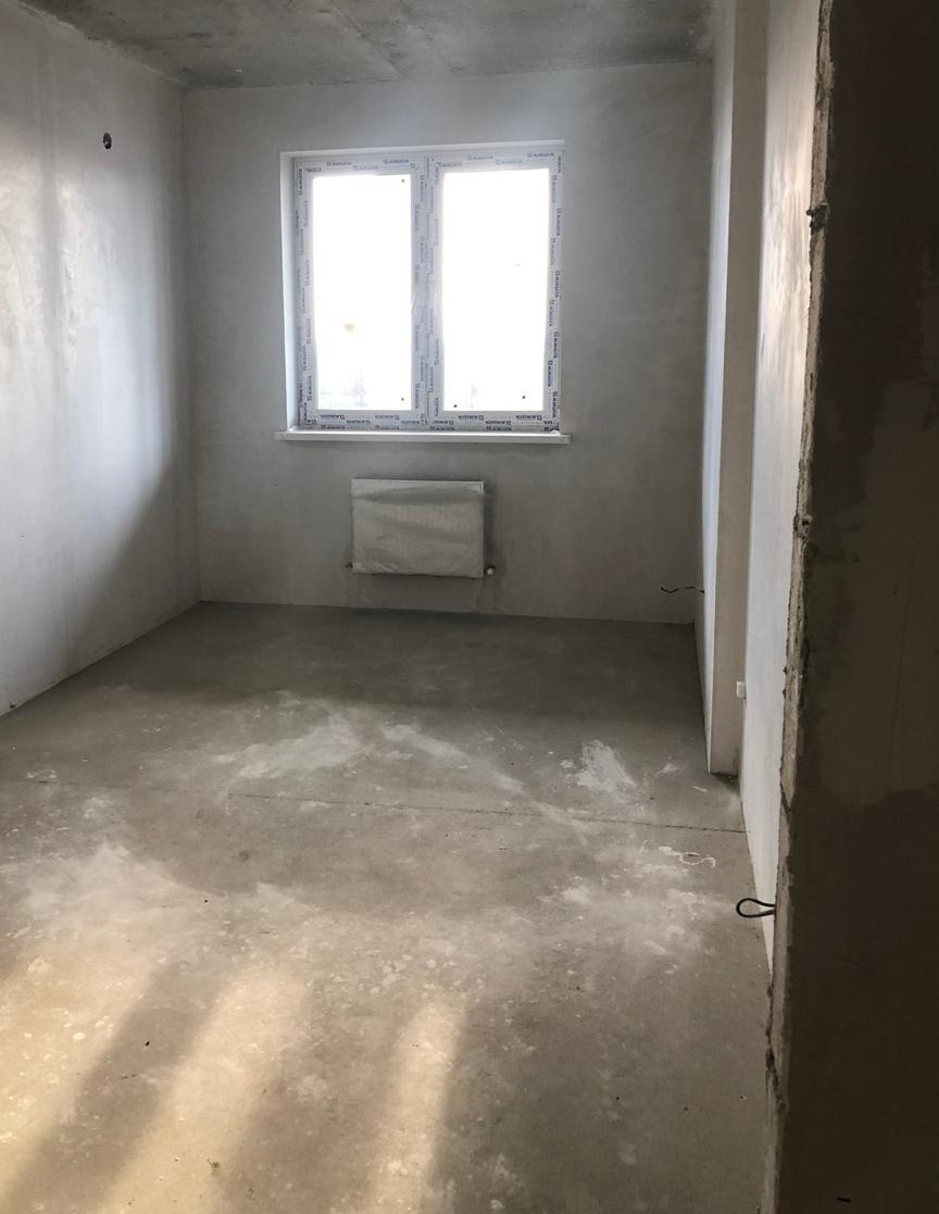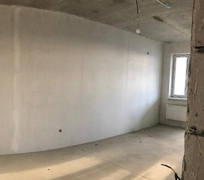 Проведены центральные коммуникации. Предчистовая отделка квартиры: стяжка пола, штукатурка стен, электроразводка по всей квартире и радиаторы отопления, без сантехники.