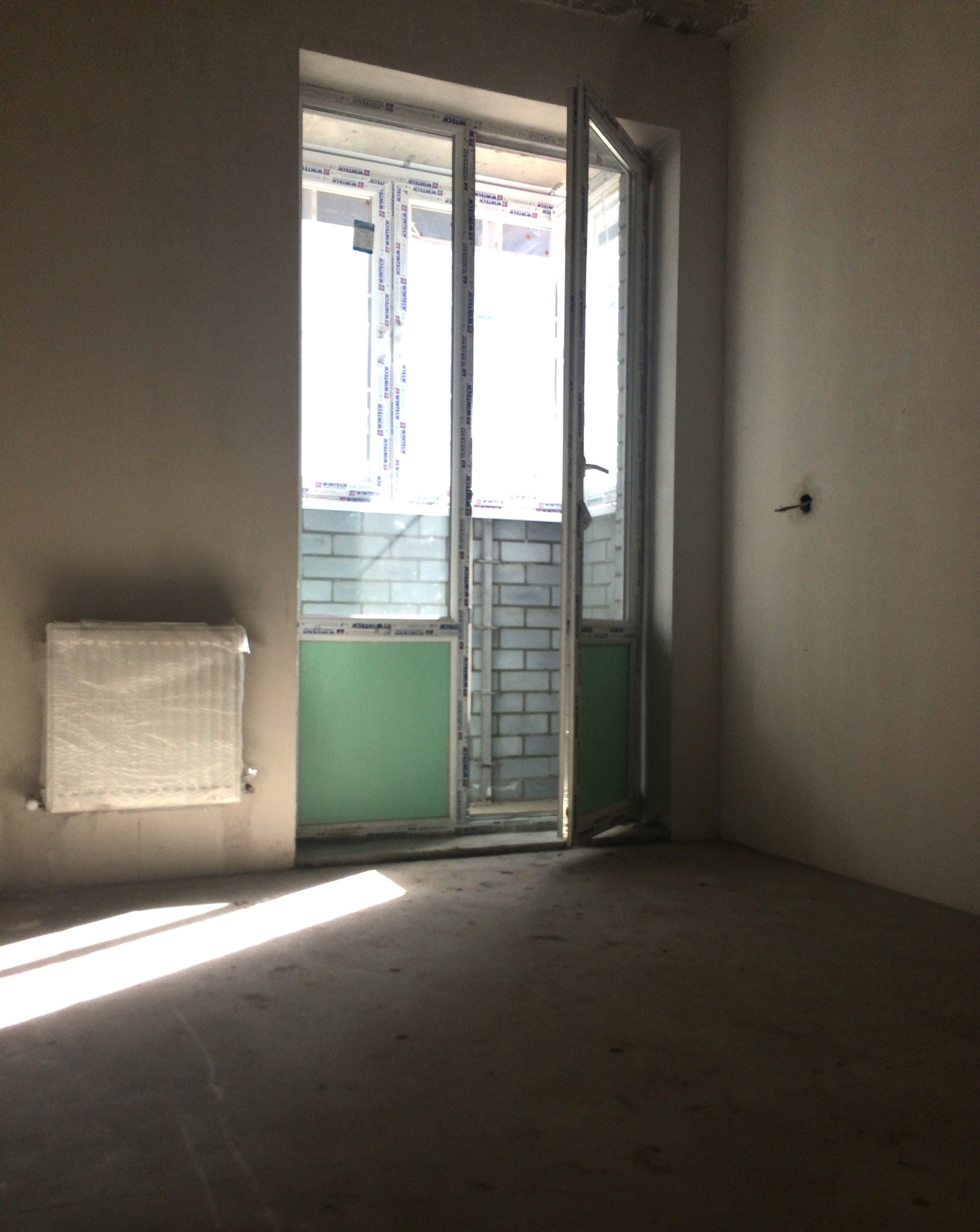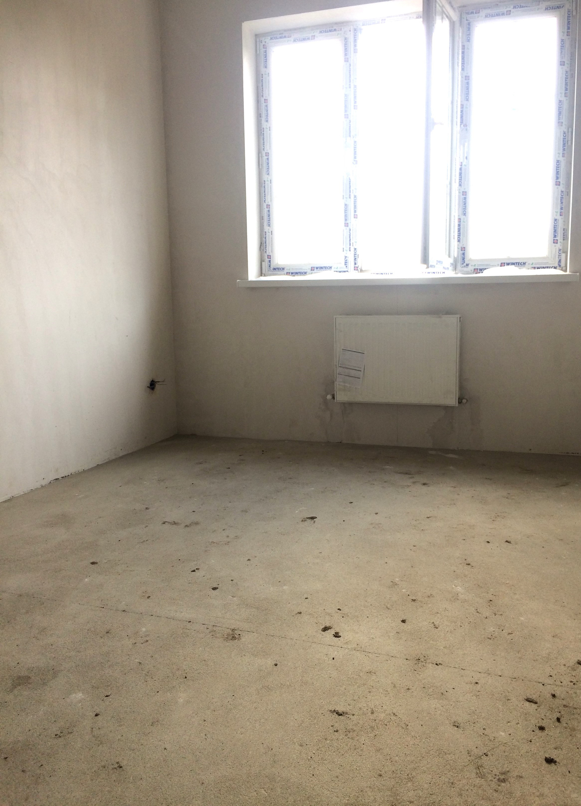 Предчистовая отделка квартиры: стяжка пола, штукатурка стен, электроразводка по всей квартире и радиатoры отопления, без сантехники.