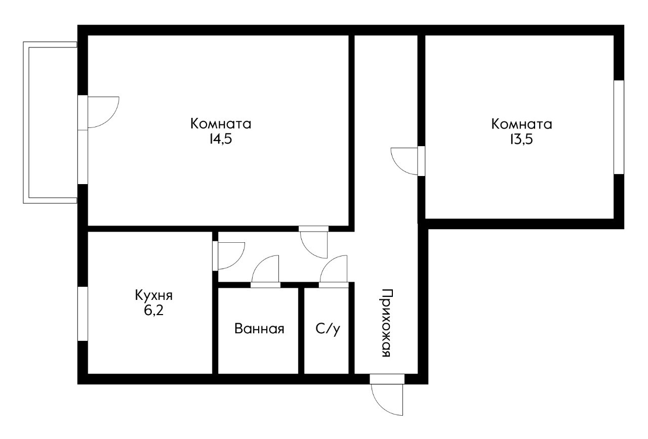 Общая площадь 44.3 м2