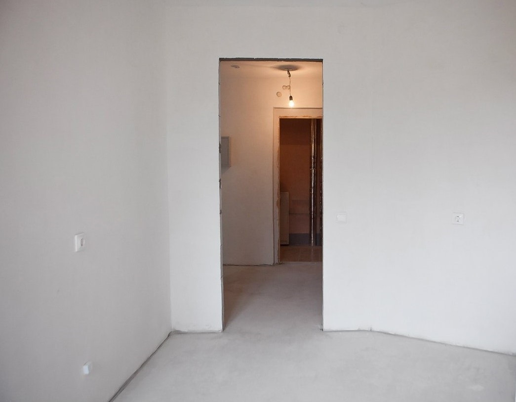 Предчистовая отделка квартиры: стяжка пола, штукатурка стен, электроразводка по всей квартире и радиаторы отопления, без сантехники.