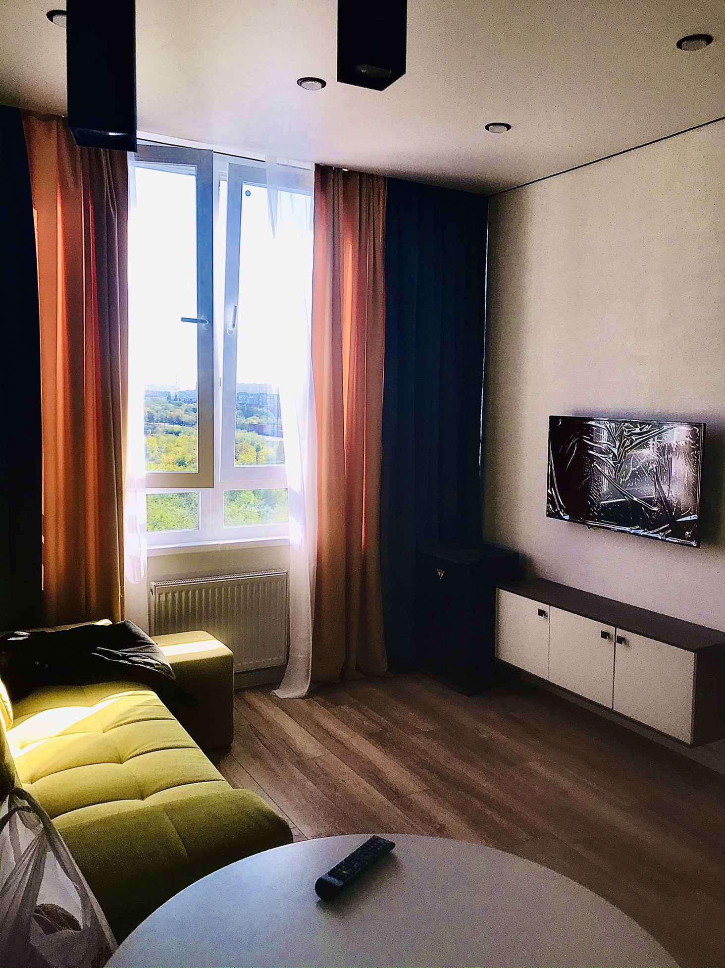 Видовая студия с дизайнерским ремонтом. Полностью готова к проживанию. Вся мебель и техника остается. Встроенная мебель и сантехника. Сделано для себя из дорогих материалов. Без обременений.