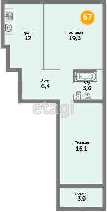 Общая площадь 64.9 м2
