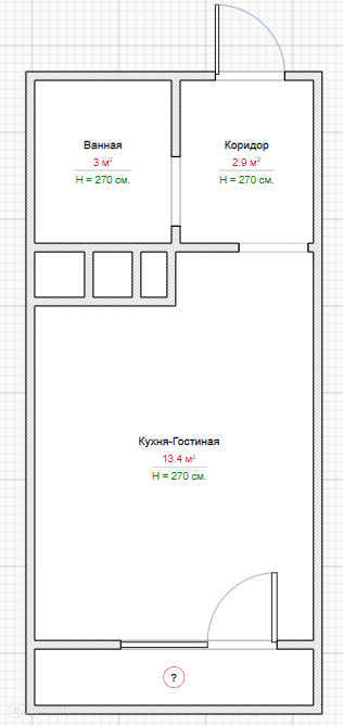 Площадь объекта 20.4 м2. Высота потолков 2,7 м2. Кухня-гостиная 13.3 м2. Ремонт предчистовой: залиты и выровнены полы. Оштукатурены стены. Проведена проводка. Установлен электросчетчик. Счетчики горячей и холодной воды. Центральные коммуникации. Изолированные комнаты. Имеется ниша для шкаф-купе.