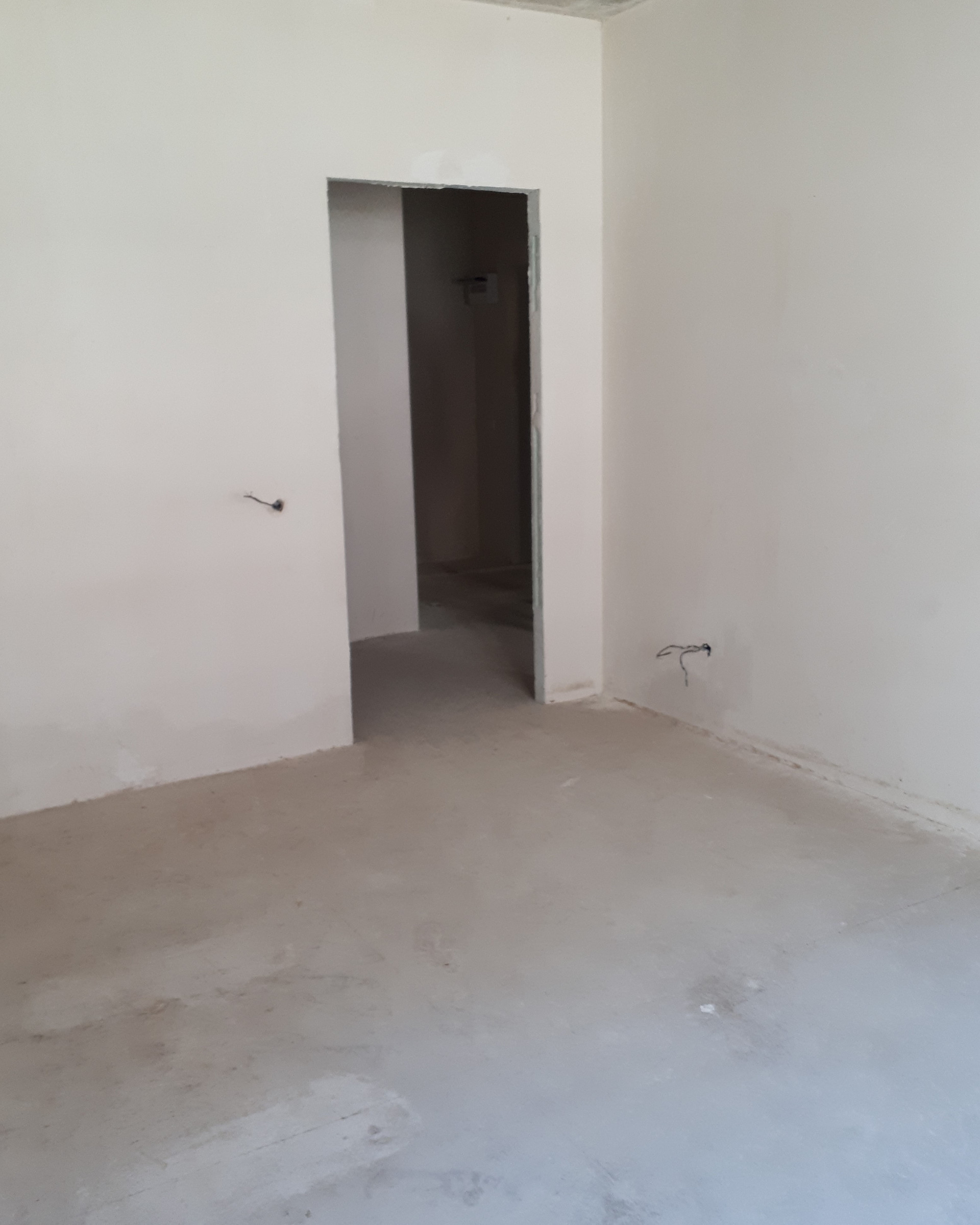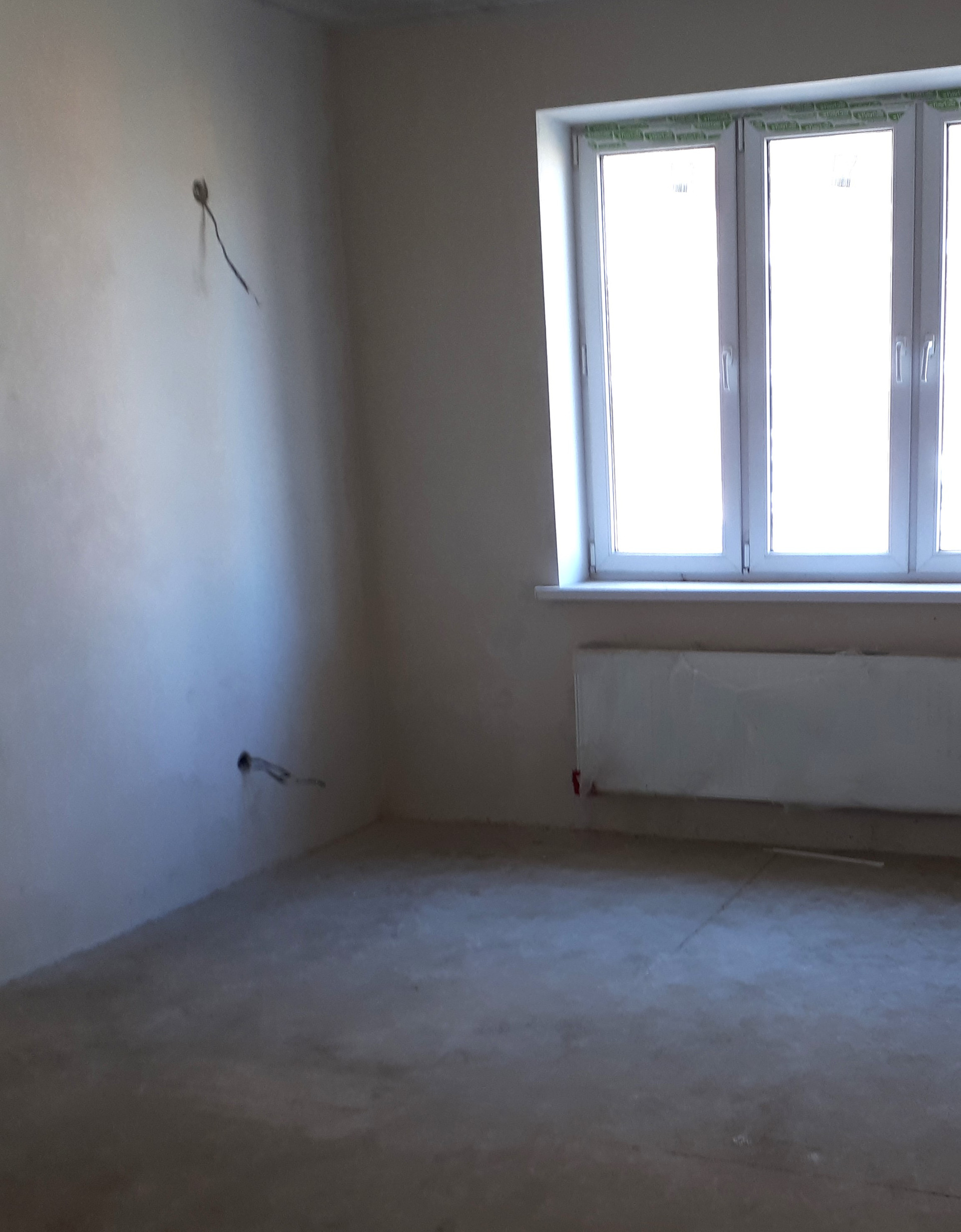 Предчистовая отделка квартиры: стяжка пола, штукатурка стен, электрoразводка по всей квартире и радиаторы отопления, без сантехники.