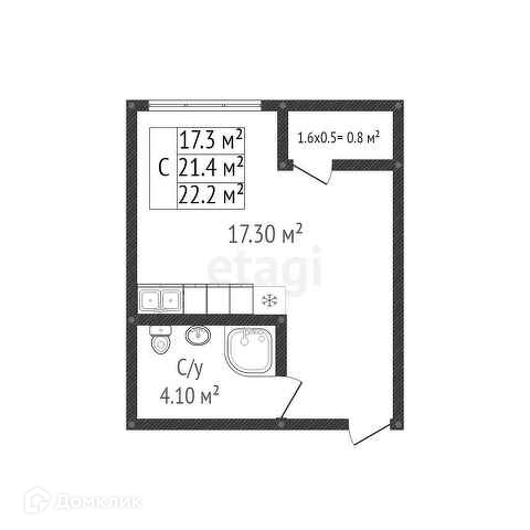 Общая площадь 21.4 м2