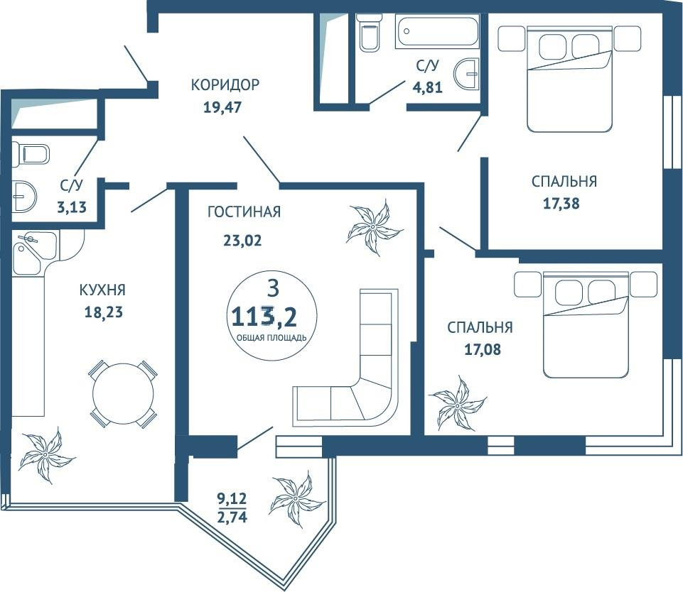 Общая площадь 118 м2