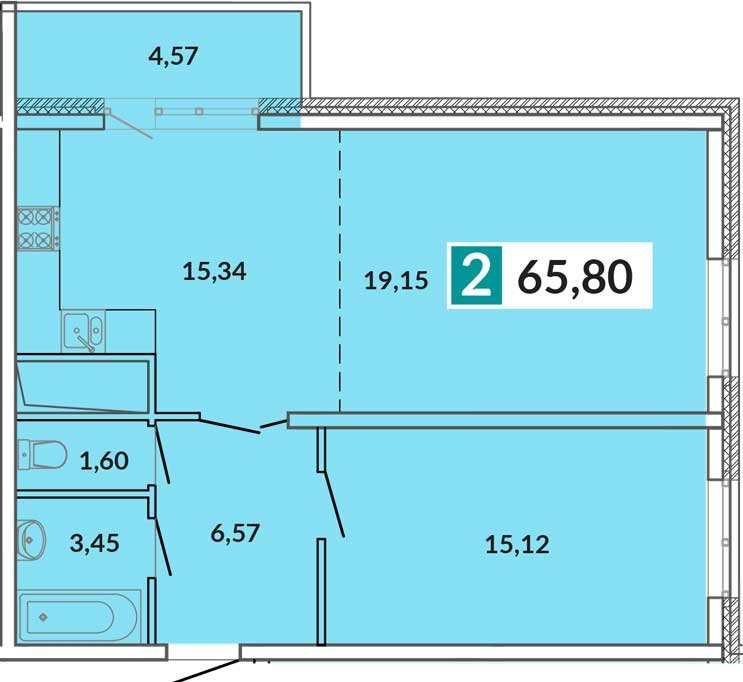 Общая площадь 65.8 м2