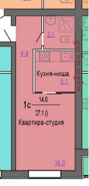Общая площадь 28 м2