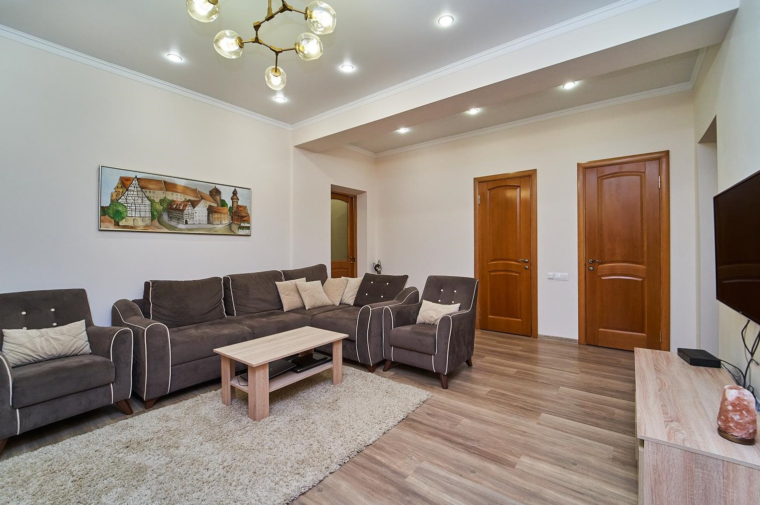 Отличная планировка, большая -кухня-гостиная, три изолированных спальни, три лоджии, раздельный санузел и просторный холл. Высота потолков 3 м, толщина стен 50 см, прекрасная шумоизоляция!