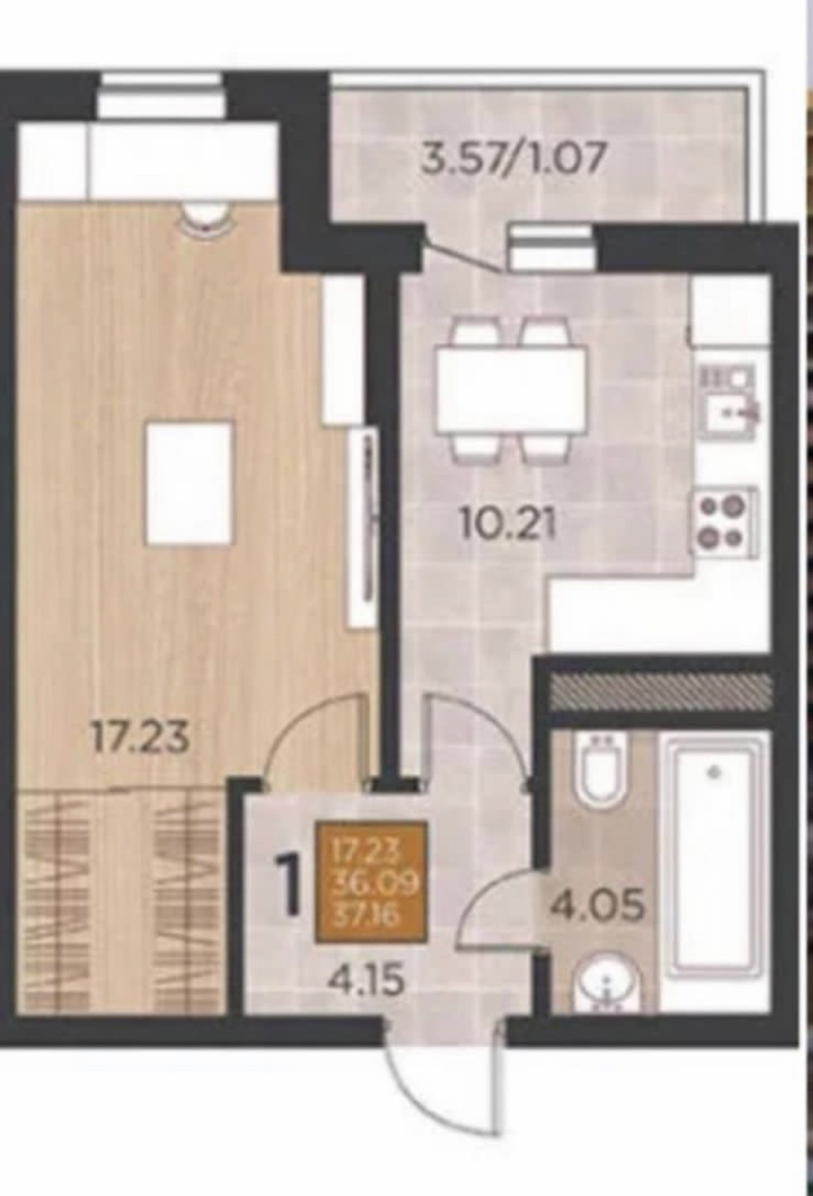 Общая площадь 37 м2