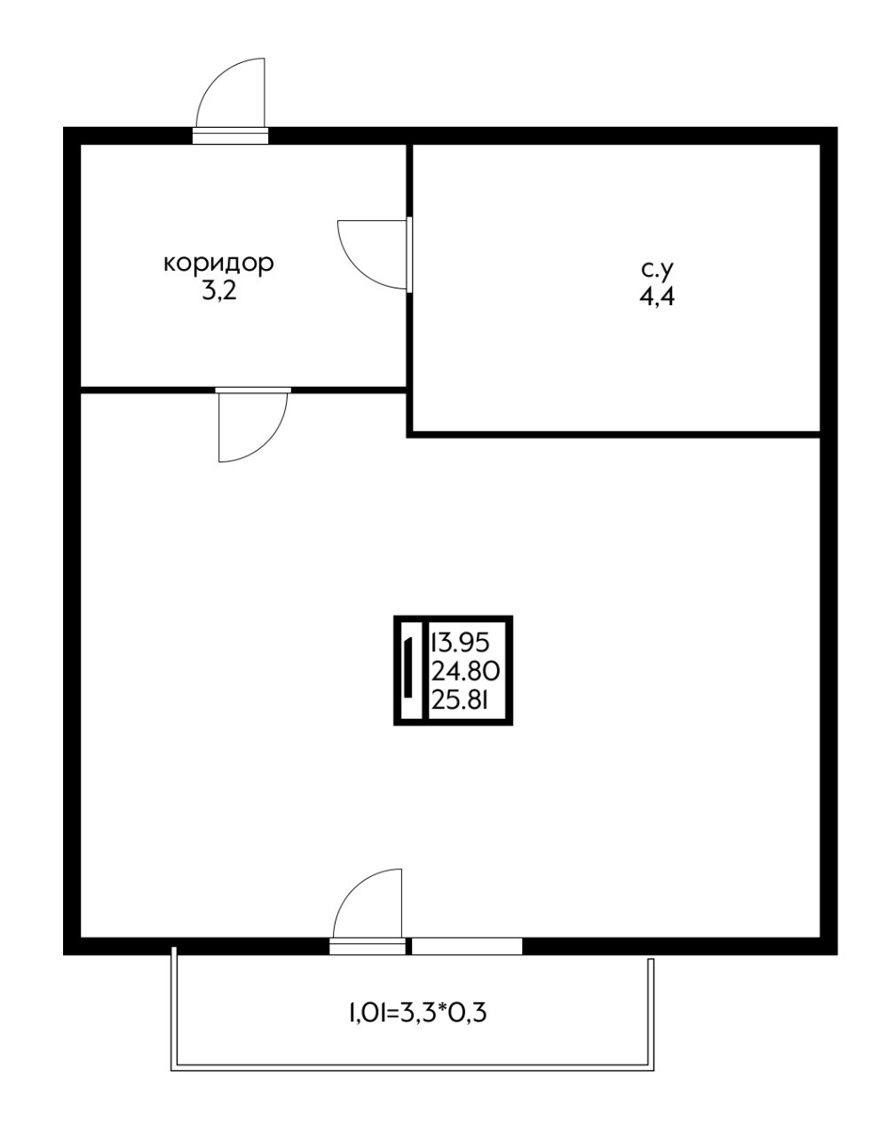 Общая площадь 25.81 м2
