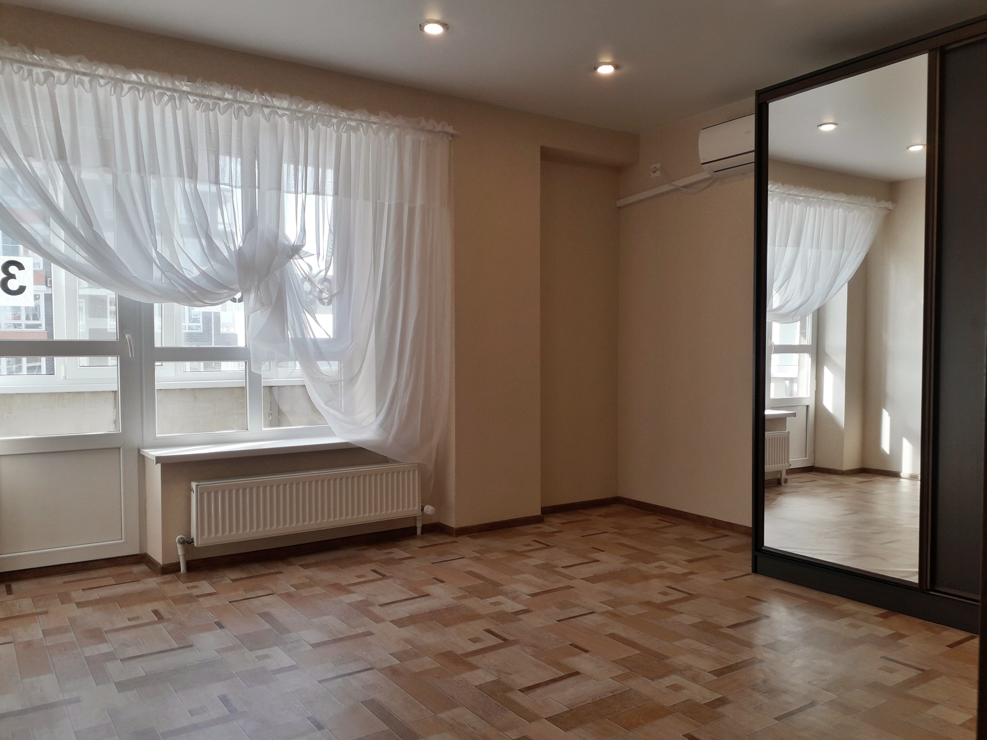 установлена сплит-система, балкон застеклен.