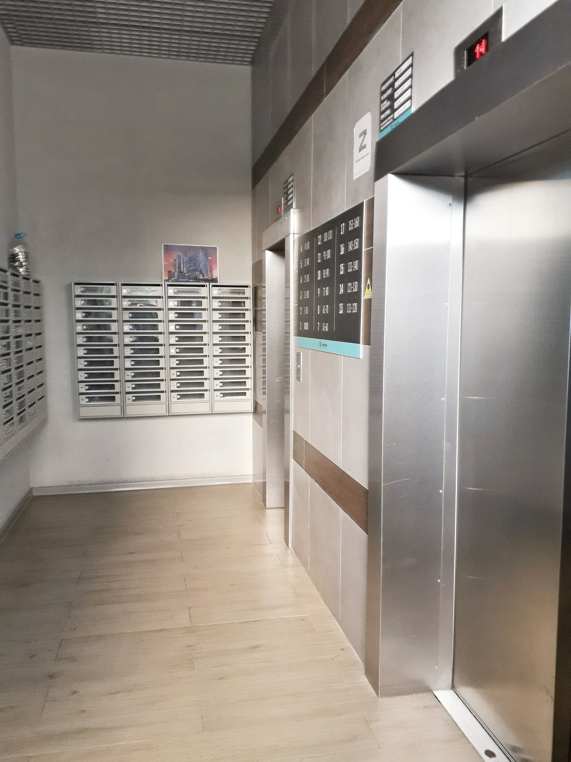 Два лифта: пассажирский и грузовой.