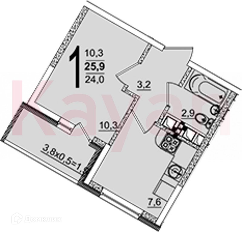 Общая площадь 25.9 м2