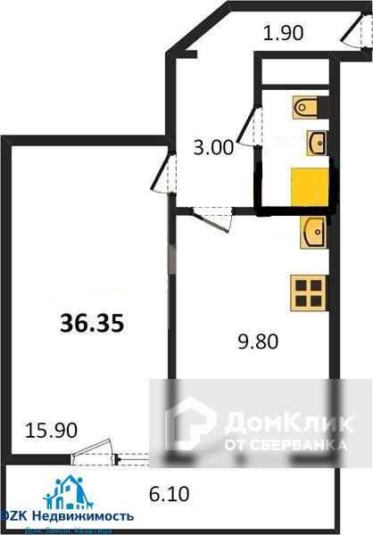 Общая площадь 36,35 м2, большая кухня, просторная прихожая, светлая комната.