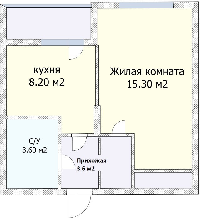 Жилая площадь 15.3 м2