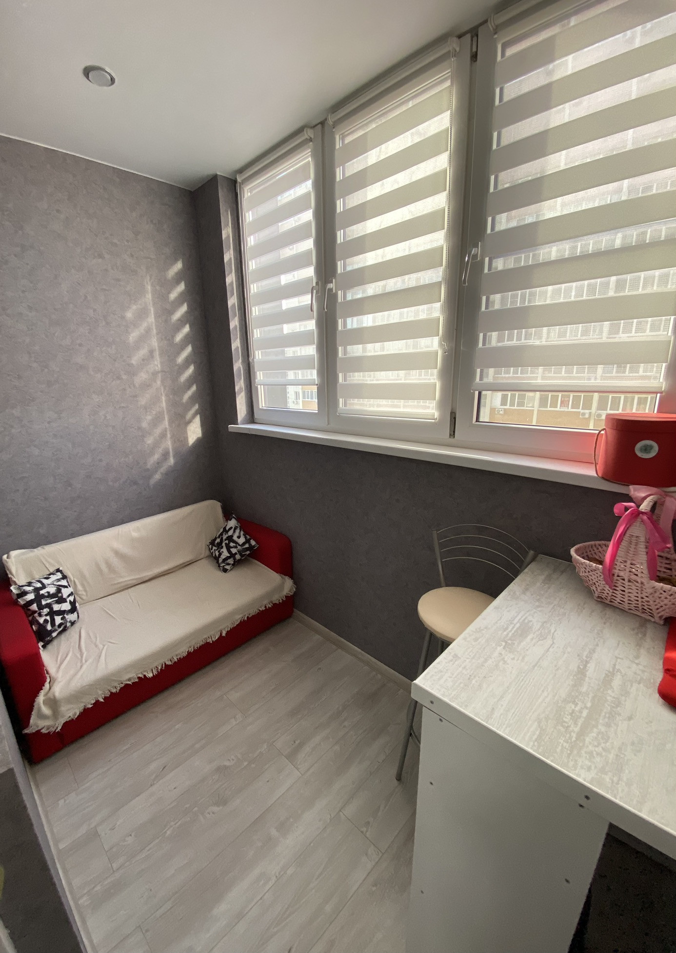 Квартира просторная, большой коридор с гардеробной системой IKEA (210x110 см, за купе-перегородкой), просторная лоджия.
