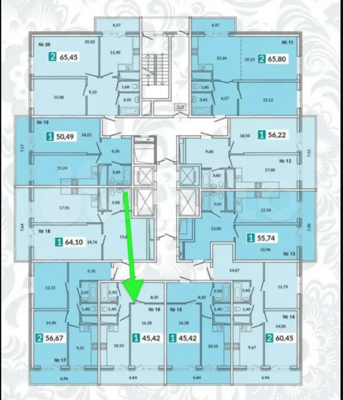 Общая площадь 45.4 м2
