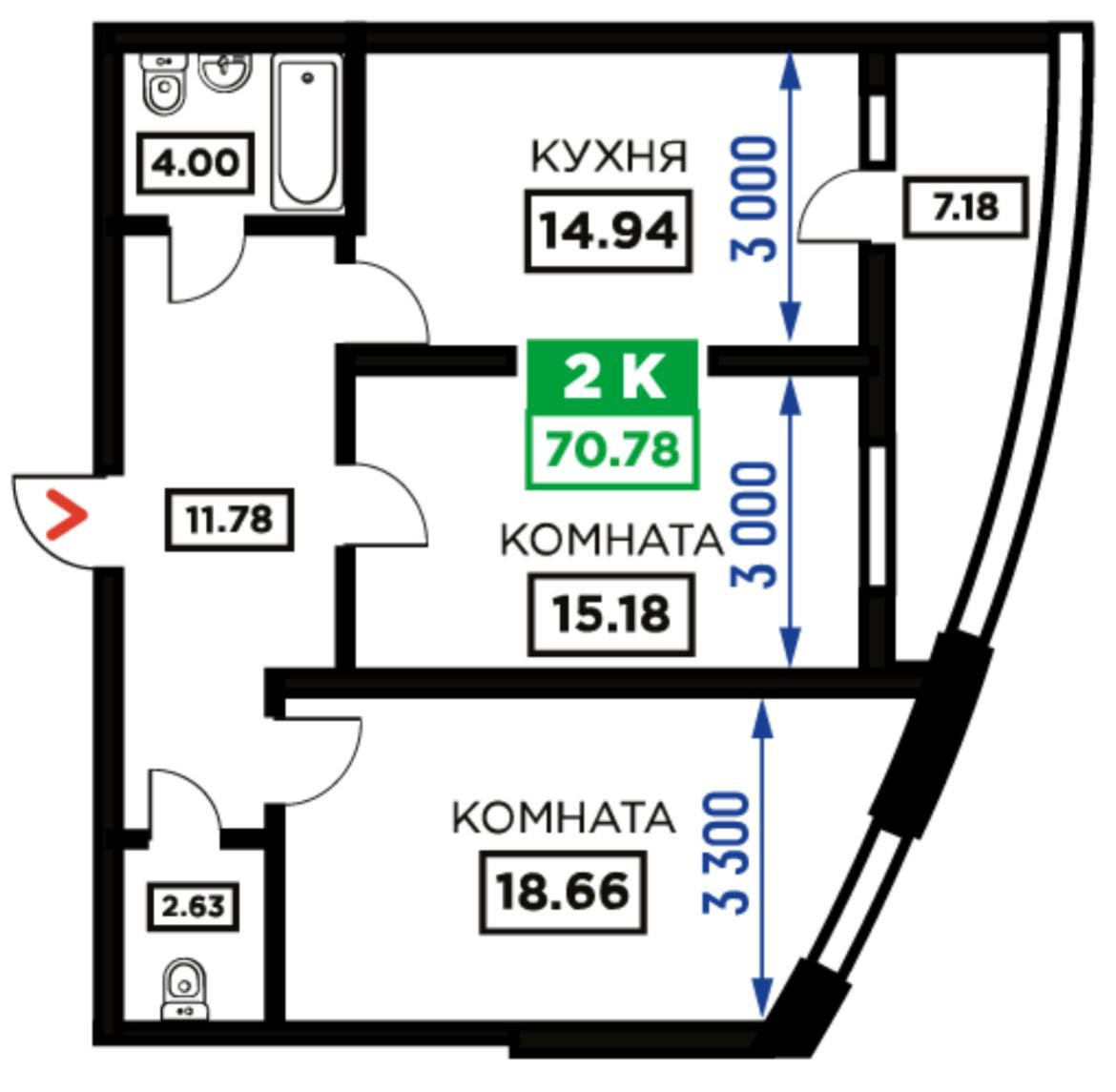 Общая площадь 69.2 м2