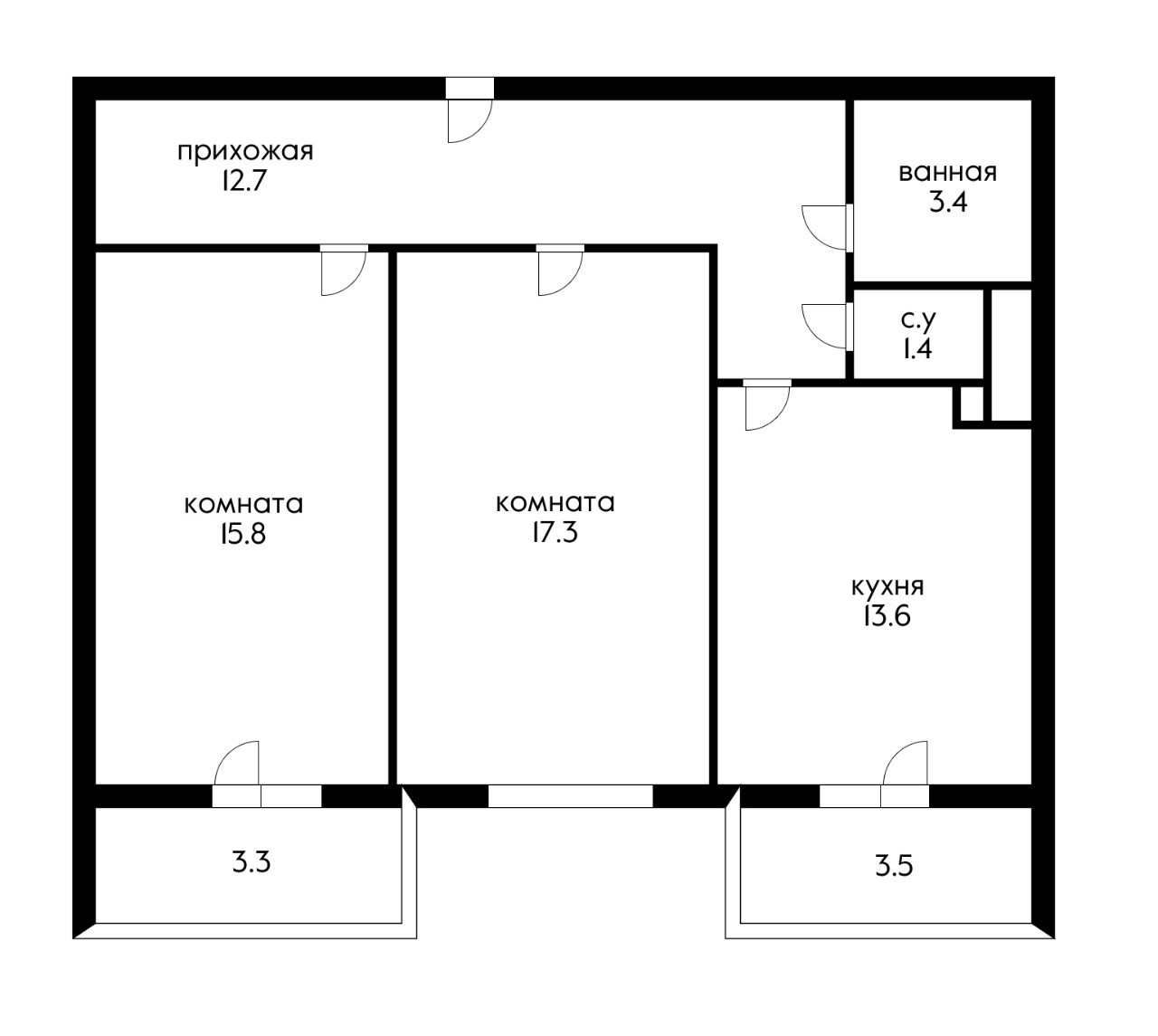 Жилая площадь 33.1 м2