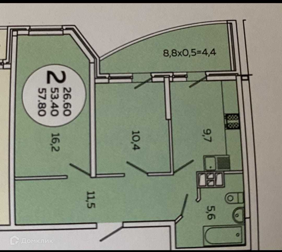 Общая площадь 57.8 м2