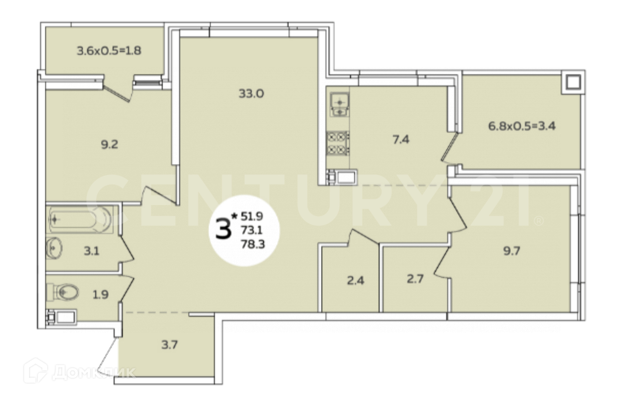 Общая площадь 78.3 м2