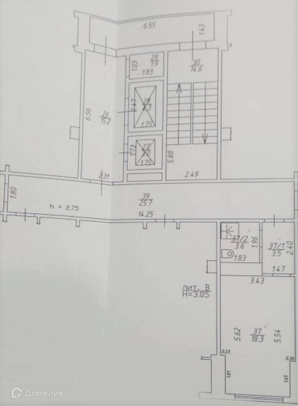Общая площадь 25.4 м2
