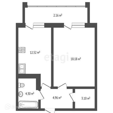Общая площадь 46.1 м2