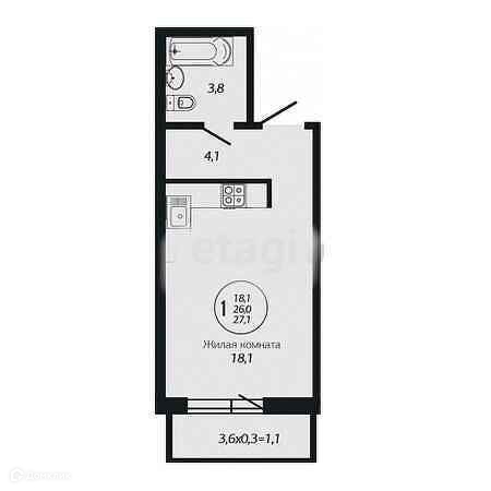 Общая площадь 26.3 м2