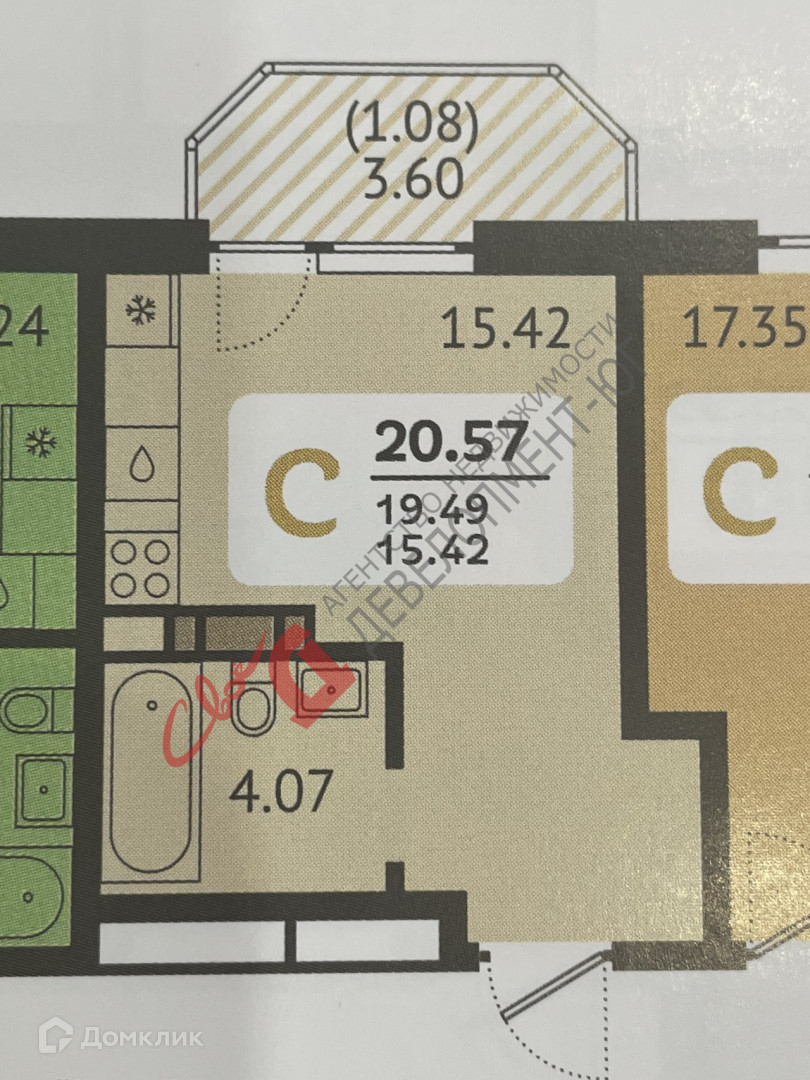 Квартира студия, 19.7 м2, этаж 7 / 9, на продажу в Краснодаре, улица Красных Партизан, 1/3к1