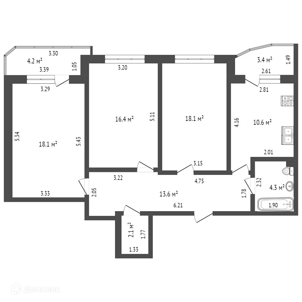 Количество комнат 3