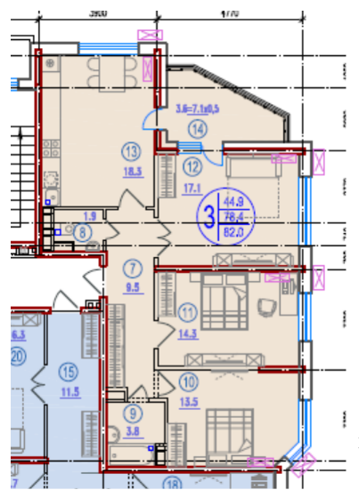 Общая площадь 82.5 м2