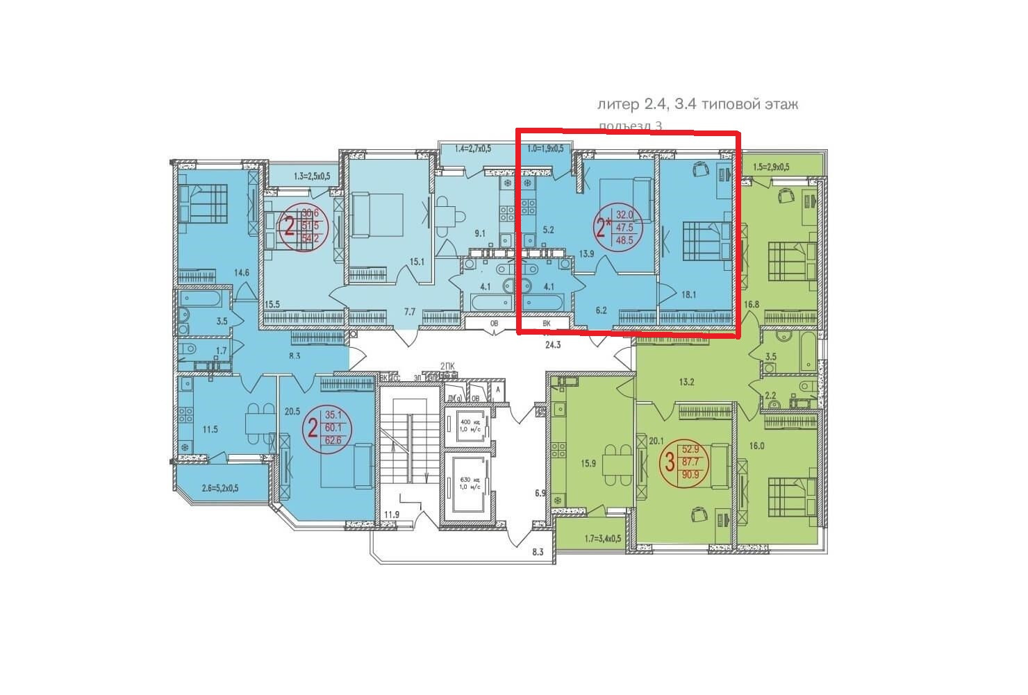 Общая площадь 48.5 м2