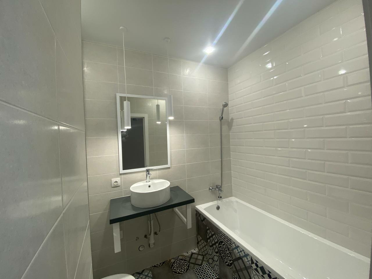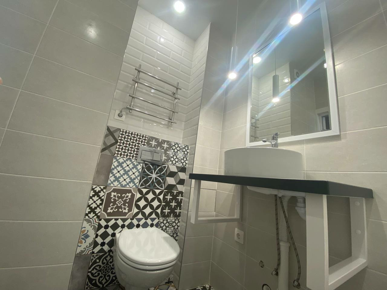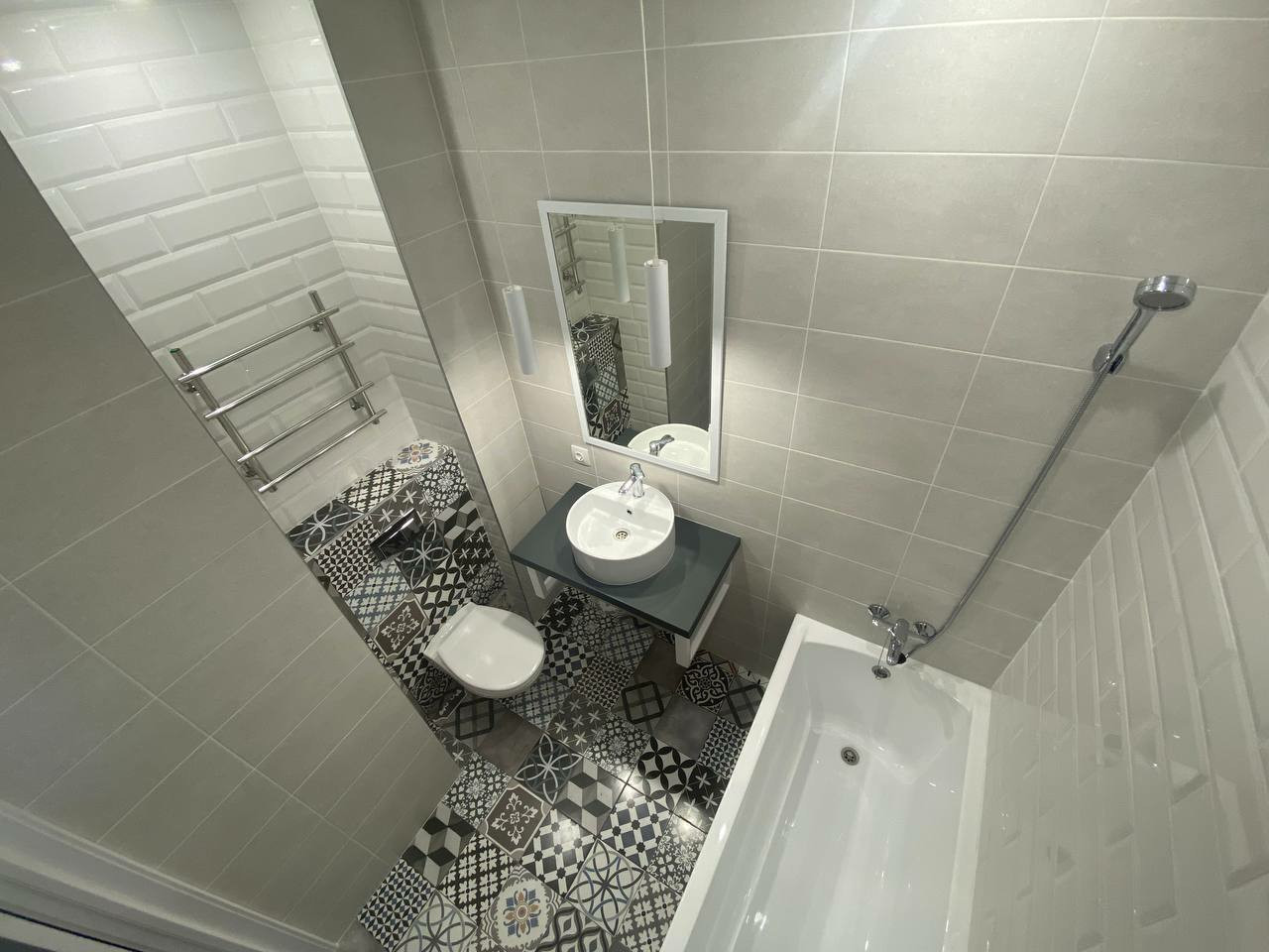 В ванной комнате польская плитка, установлена инсталляция, смесители пр-ва Япония, полотенцесушитель электрический , выводы под стиральную машину, подиум для раковины керамический - влага и перепады температур не страшны,дверь с магнитным замком.
