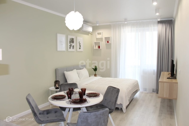 Студия в доме бизнес класса ЖК Сказка Град. Квартира с дизайнерским ремонтом и мебелью. В стоимость входит все, что вы видите на фото! В квартире никто не проживал, все совершенно новое! Квартира без обременений, никто не прописан! В комплексе уже открыт Магнит, аптека, WB, OZON, CDEK, строится детский сад и школа, множество парковок. Около дома остановка общественного транспорта в любые направления города. В нескольких минутах езды на авто находятся аэропорт, ТЦ OZ-mall, улицы Фадеева, Ставропольская, Автолюбителей, Старокубанская, Селезнева, Уральская, Бородинская.