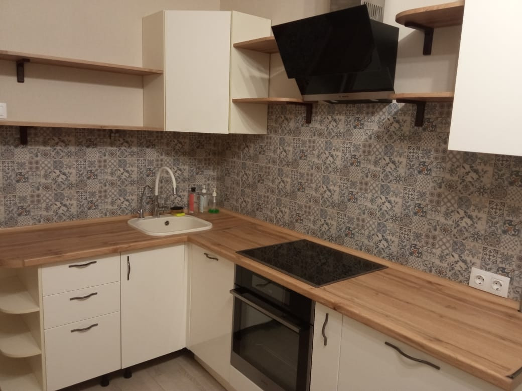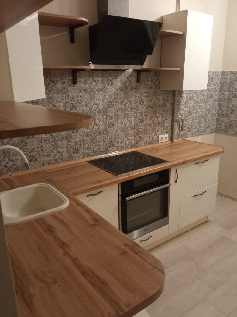Кухня и мебель в ванной (сделана на заказ).