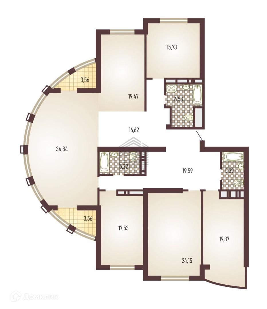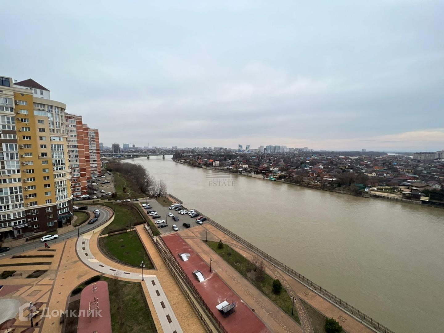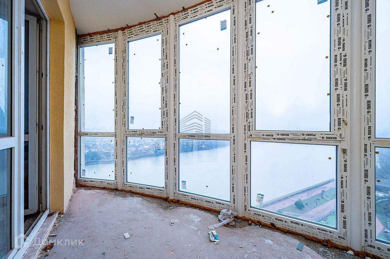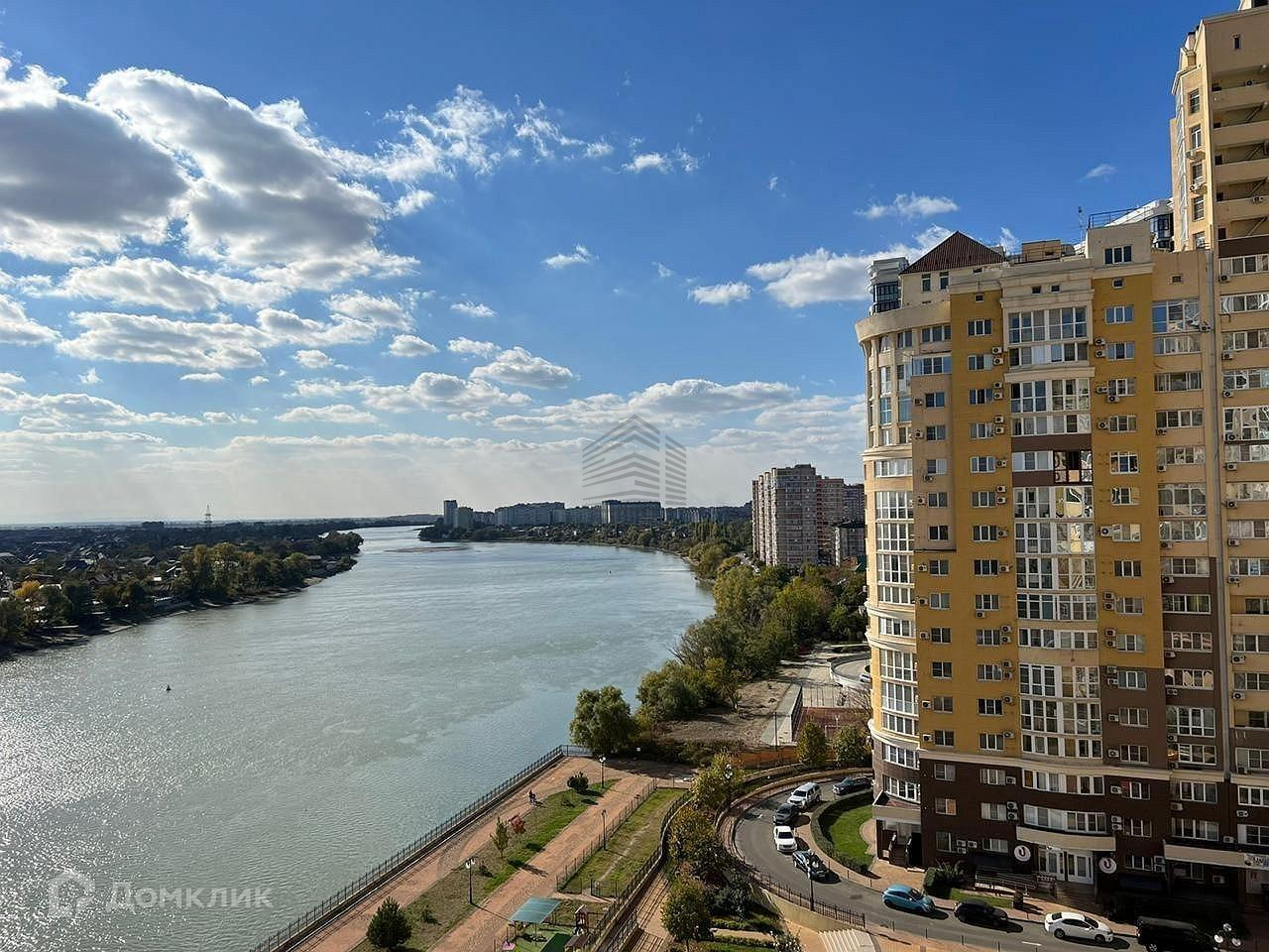 Квартира находится на 11 этаже . Из окон открываются потрясающие виды на город и реку Кубань. Планировка: общ. S=200 м, 5 спален и кухня-гостиная 35 м2, 3 с/у, просторная витражные балконы.