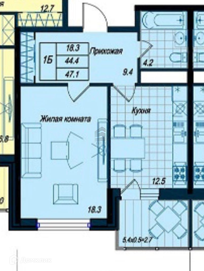 1-комнатная квартира, 44.2 м2, этаж 13 / 25, на продажу в Краснодаре, Дальняя улица, 8к2