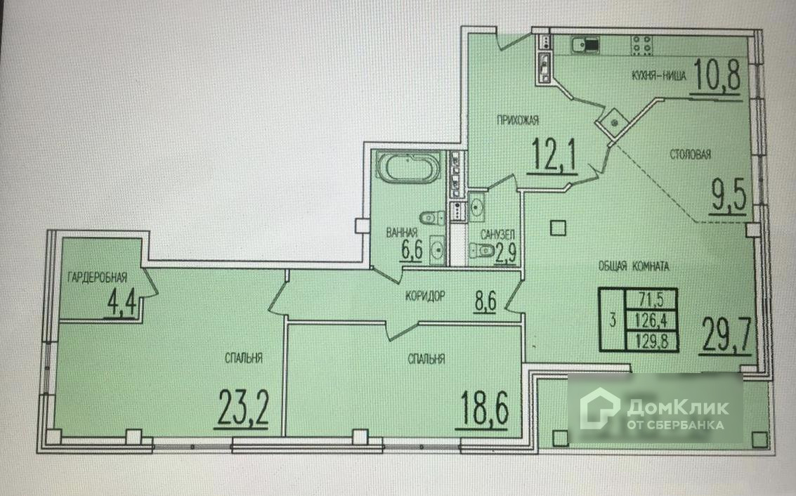 Жилая площадь 71 м2