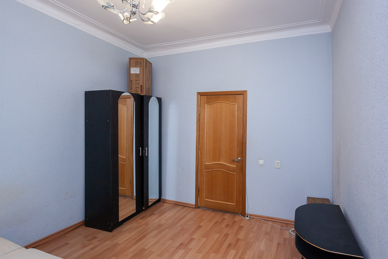 Уютная, просторная квартира, высокие потолки. Самая популярная планировка - на две стороны! Кухня и спальня выходят на улицу, вторая спальня с окнами во двор.
