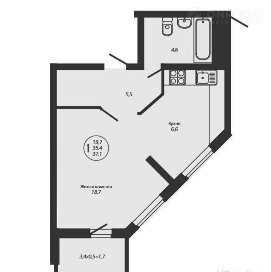 Балкон, лоджия 1 лоджия