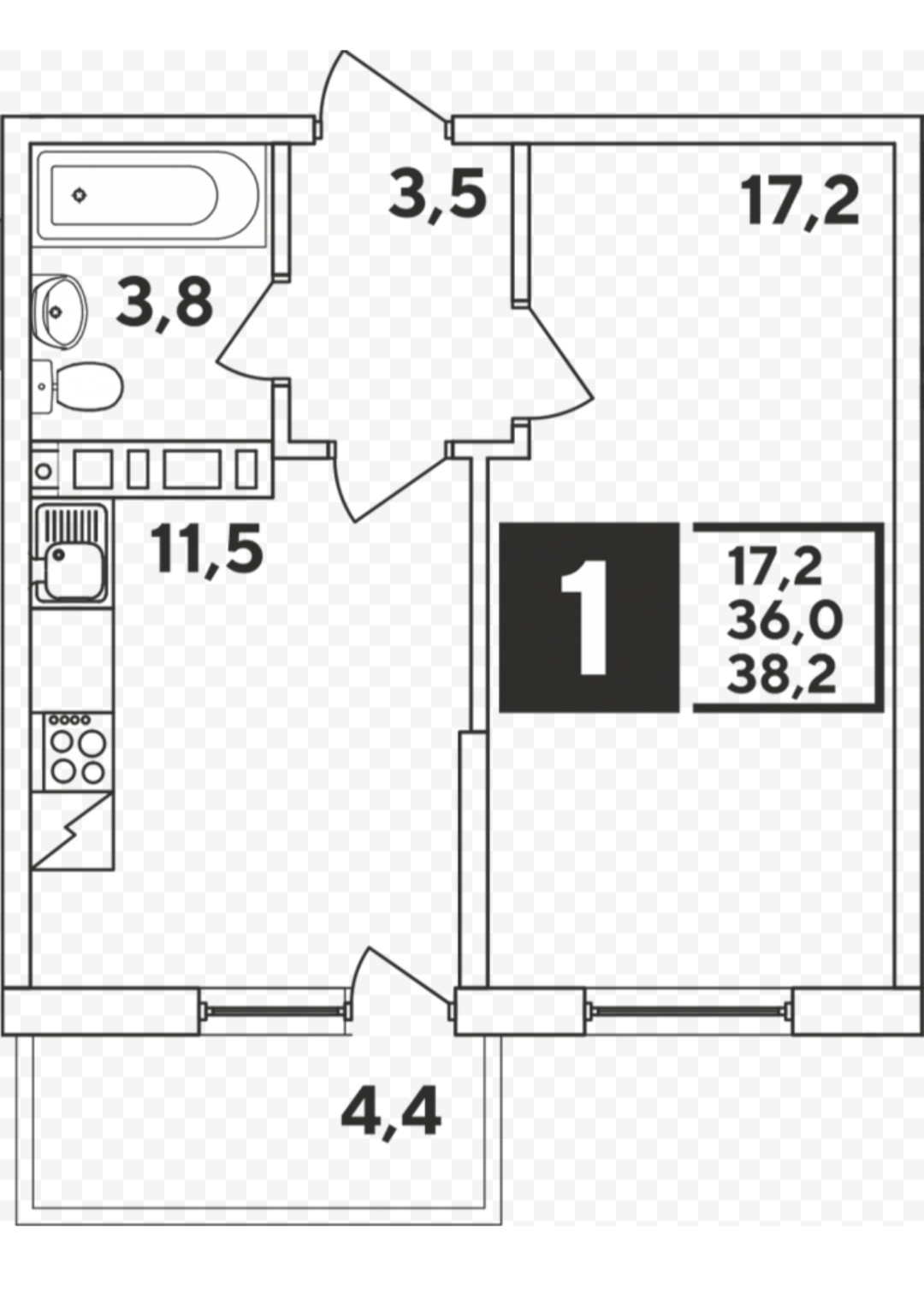 Балкон, лоджия 1 балкон